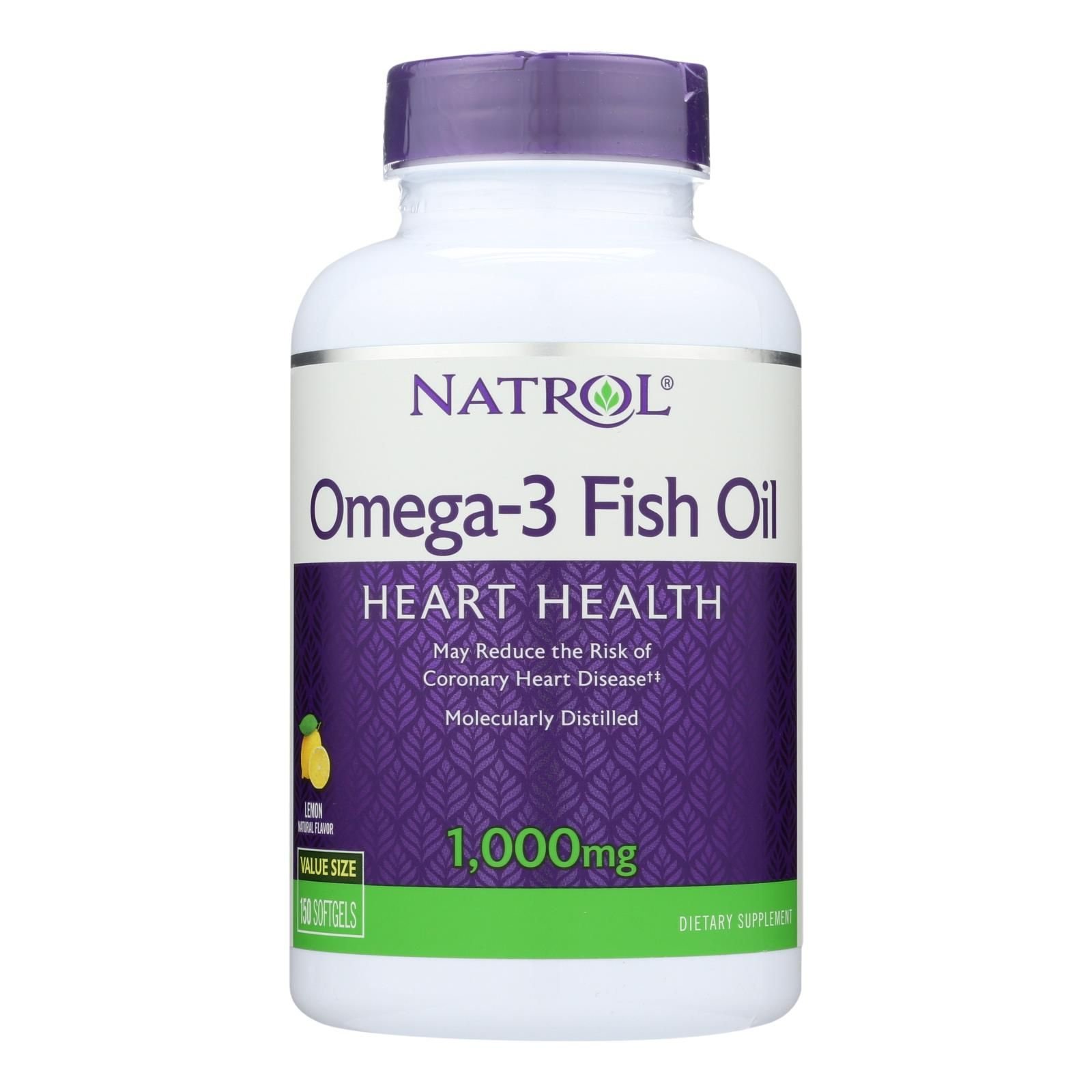 Natrol omega-3 fish oil lemon description: supports heart, eye and bone health contains fish oil distilled for purity natrol omega-3 fish oil includes natural lemon oil for a great tasting lemon flavor. When taken regularly, omega-3 fish oil helps promote heart health. Omega-3 fish oil is molecularly distilled to remove pesticides, pcbs and heavy metals. Free of yeast, wheat, corn, milk, egg, glutens, artificial colors or flavors, added sugar and starch. Disclaimer these statements have not been evaluated by the fda. These products are not intended to diagnose, treat, cure, or prevent any disease.