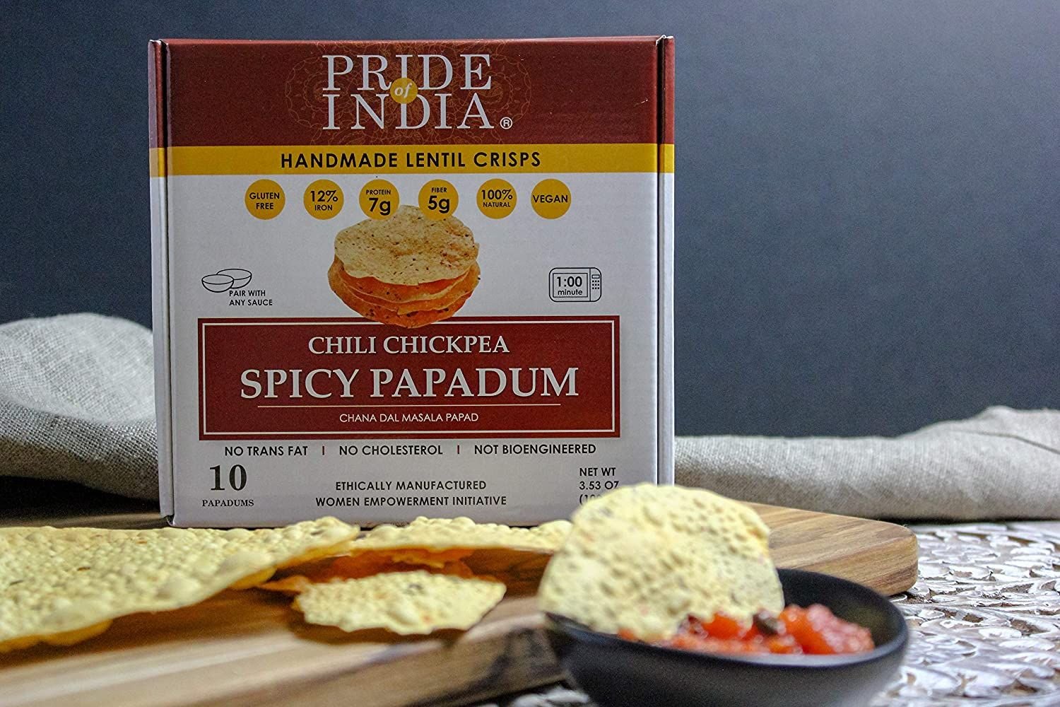 Home > Pride Of India - Spicy Chickpea Masala Papadum Lentil Crisp, 10 count (3.53oz - 100gm) - Microwaveable Instant Chips, Gluten-Free Vegan Crackers