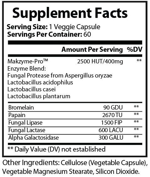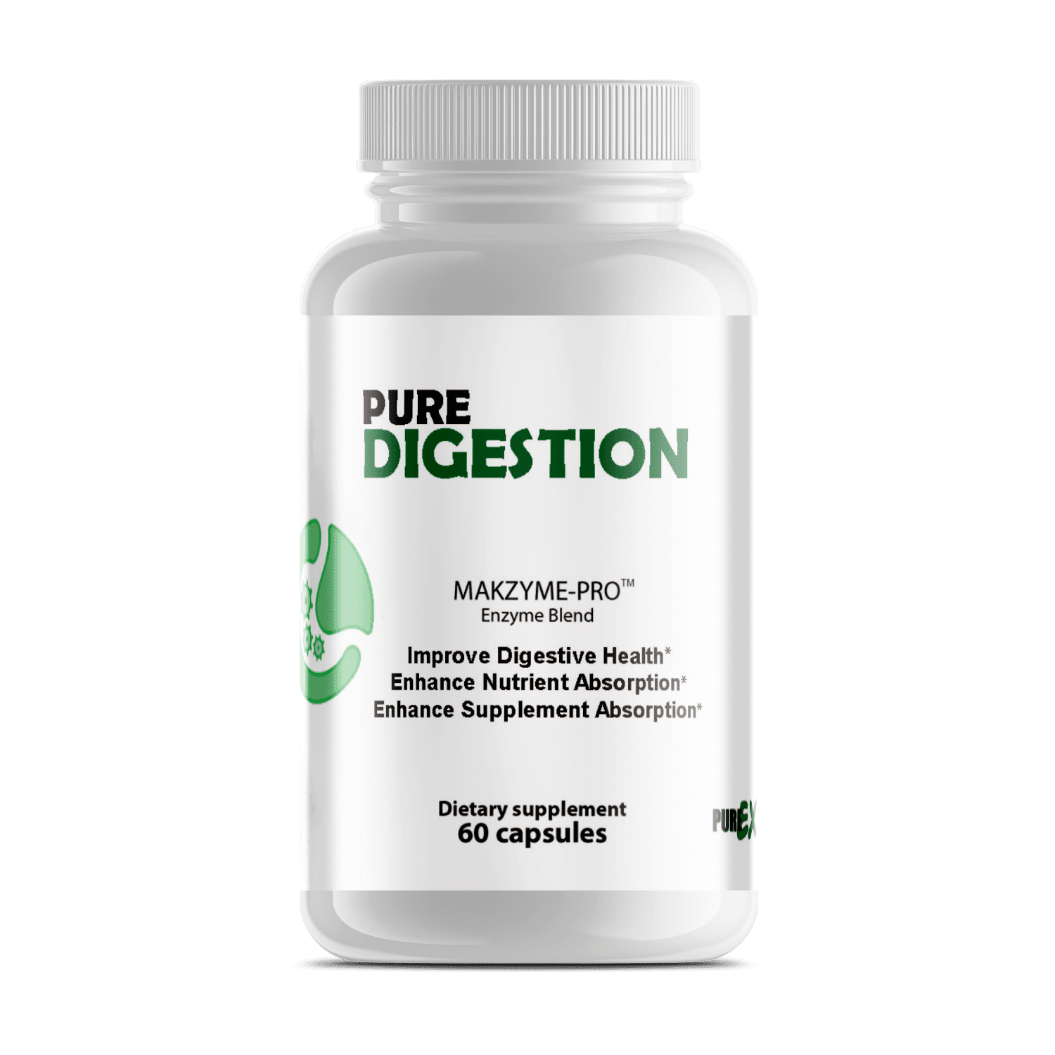 Pure Digestion enzymes come complete for complete digestion support. We put lactase, lipase, papain for the protease, bromelain another proteolytic(digest protein) enzyme and the super powerful Makzyme Pro ™ Enzyme Blend.