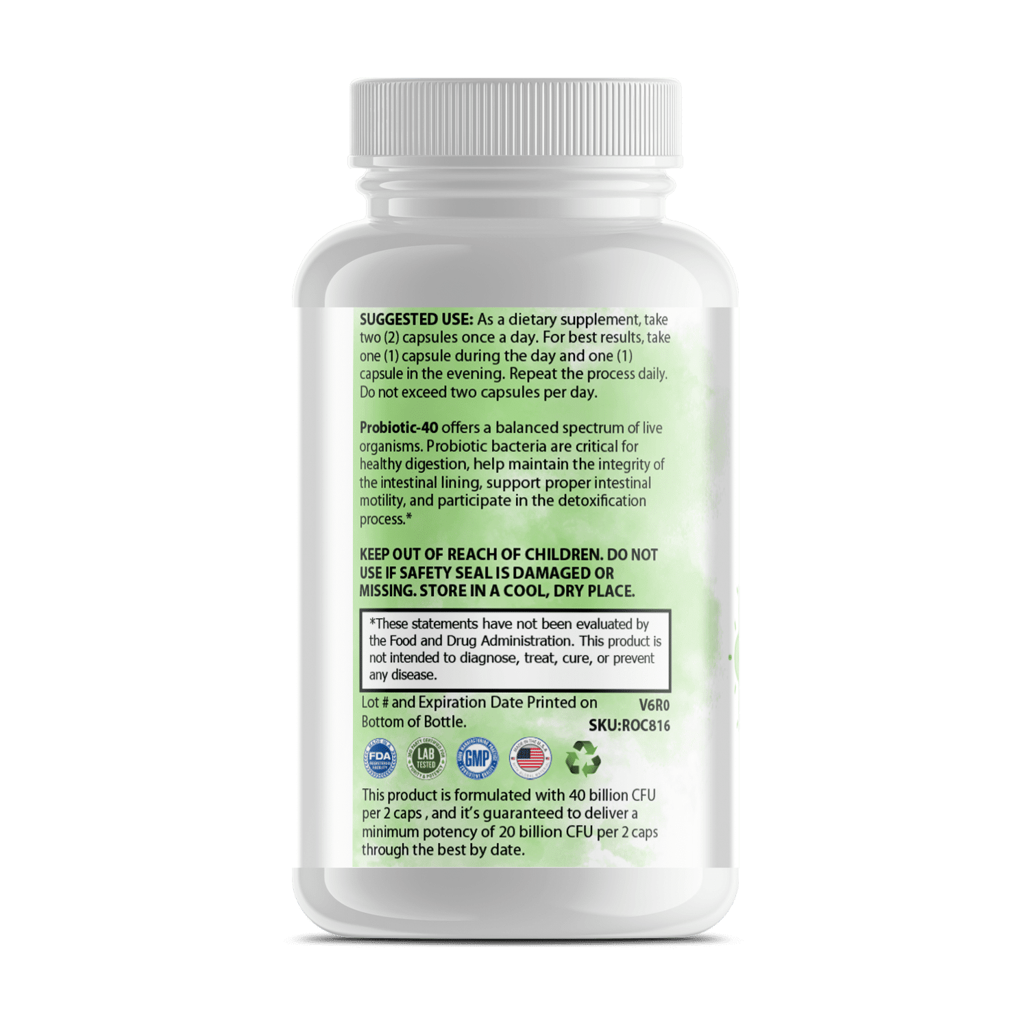Pure Probiotics contain 40 billion units of colony forming units(CFU) to help improve or balance your microbiota. With MAKTrek® Bi-Pass Technology Pure Probiotics is formulated for a higher level of absorption. MAKTrek® Bi-Pass Technology is a patented formula that helps to improve the absorption of probiotics specifically within the body. MAKTrek® works by protecting the capsule with a protective layer keeping it safe in the stomach. This is so that it isnt broken down early by digestive enzymes in the stomach or intestines.